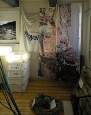 Udstillingen omfatter bl.a. store genstande fra det tidlige rejefiskeri som er opsat omkring en kulisse / et ”styrhus” med indbygning af ældre rejetrawler dele.